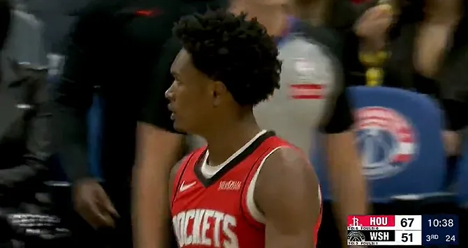 比赛第三节,奇才下半场连续出现失误,伊森、阿门分别暴扣火箭领先16分。
