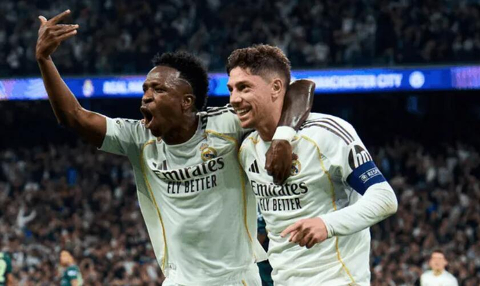 #皇马3比0曼城# 本场比赛,维尼修斯送出助攻,这位巴西球星为皇马在欧冠助攻31次,追平C罗在皇马的欧冠助攻次数,并列成为皇马欧冠助攻王。
