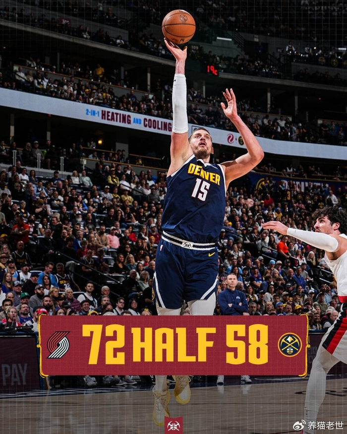 掘金坐镇主场迎战开拓者,这是两队本赛季第4次交手,第一节两队打得十分胶着,约基奇首节打满12分钟,攻防两端的表现都十分出色,单节10投6中轰下12分6篮板4助攻2抢断,不过即使约基奇全能输出,第一节打完掘金仍31-35落后4分。